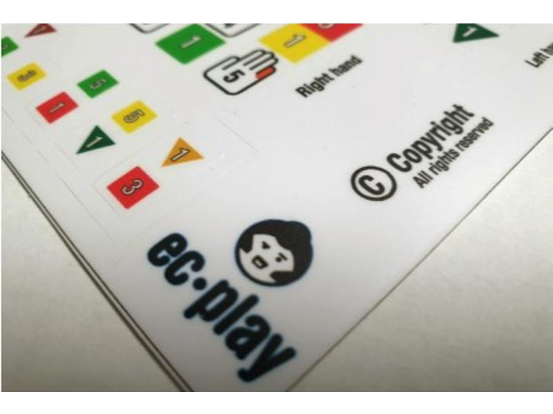 Merkelapper for høyre og venstre hånd som beskriver bass og akkorder iht EC-Play Color Code System. Med disse merkelappene kan du spille piano med EC-Play Band Appen.